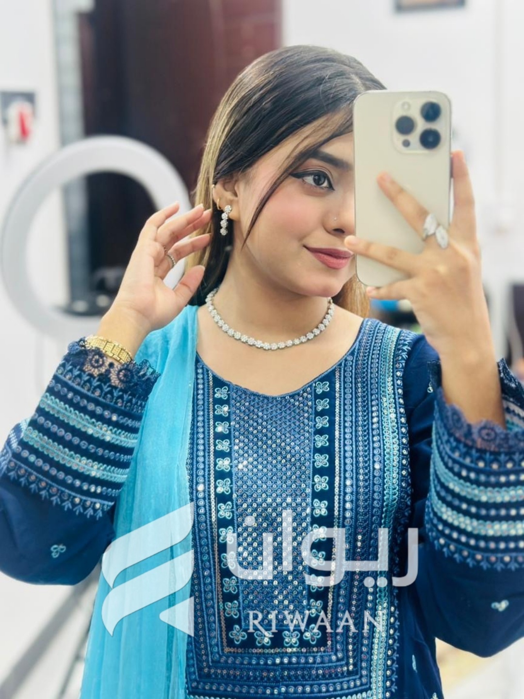 Be the first to review “Blue Sequence Embroidery Dress”